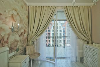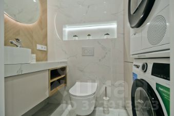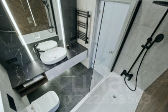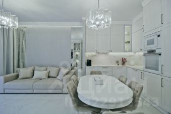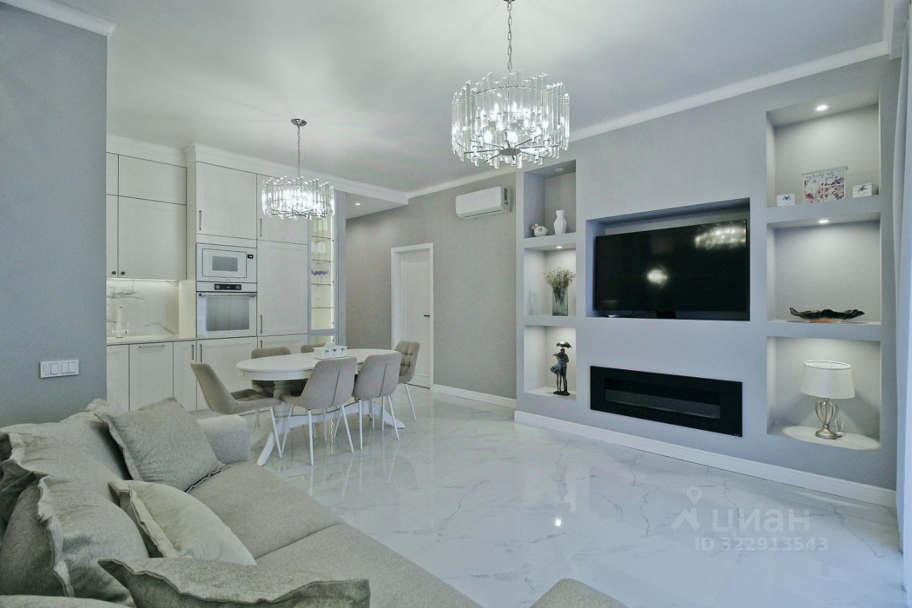В квартире сделан дизайнерский ремонт в едином стиле, теплый пол в санузлах, коридоре и кухне-гостиной. Стены выровнены под покраску, натяжные и подвесные потолки с разным уровнем освещения, зеркала, 2 кондиционера, биокамин.