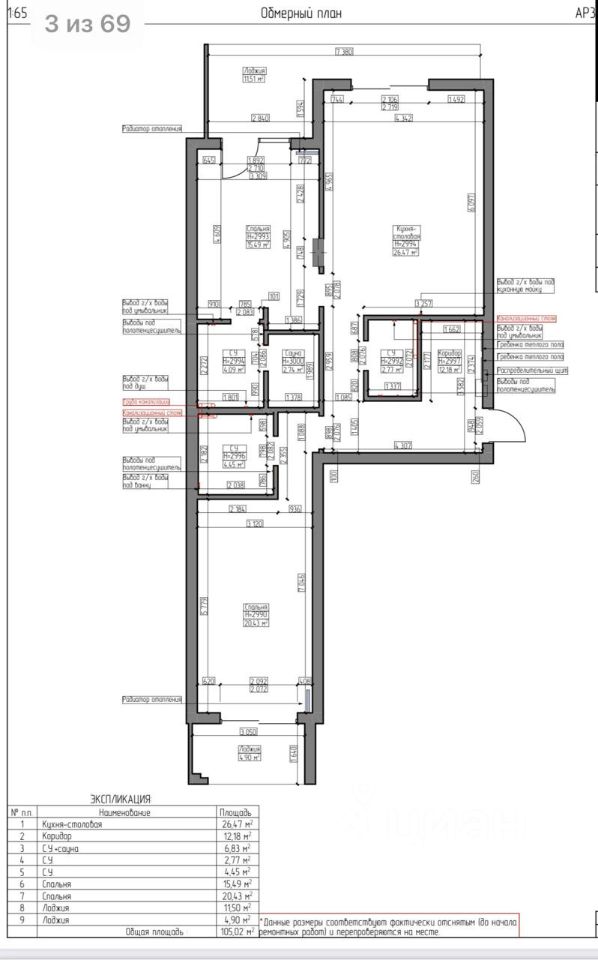 Кухня-гостиная 27 кв.м., две спальни 20 и 15 кв.м. с индивидуальными санузлами, сауной и выходом на открытые террасы, большая гардеробная.