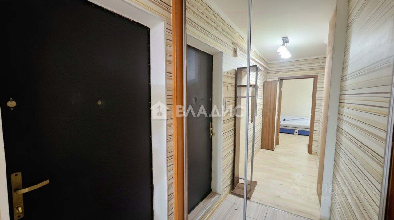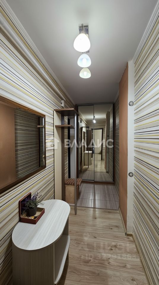 Общая площадь квартиры составляет 32 кв. м, жилая площадь — 13,9 кв. м, площадь кухни — 6,1 кв. м. Окна выходят во двор за домом.