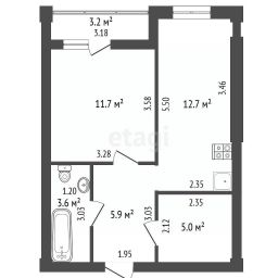 Продается квартира в новом доме площадью 38,9 м2 без учета балкона.