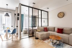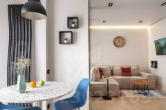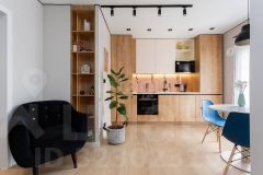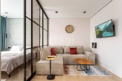 Ремонт в квартире выполнен с использованием качественных и дорогих материалов! Комната разделена на 2 зоны, большая кухня гостиная и зонированая спальня. В квартире есть своя просторная гардеробная.