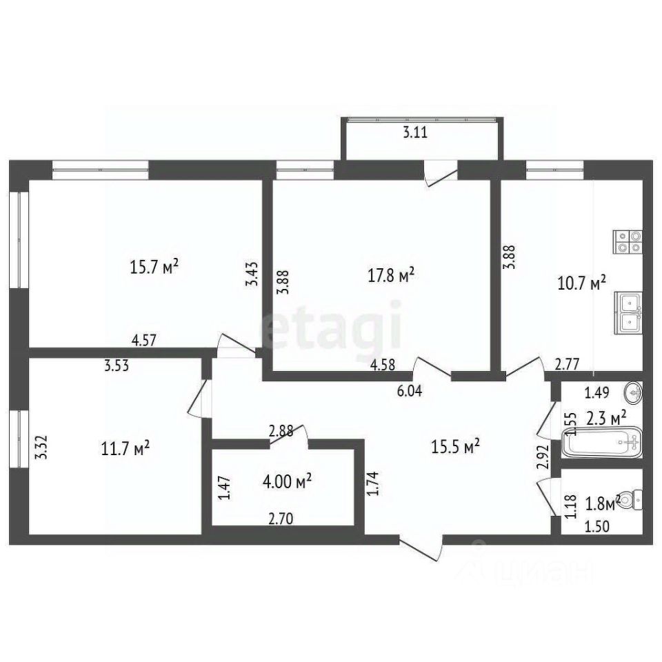 Общая площадь квартиры составляет 80м2 и имеет удобную планировку в которую входит: