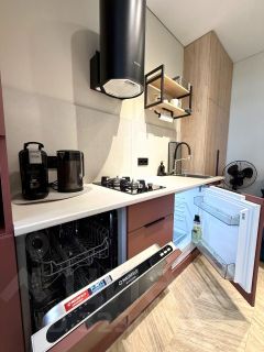 О квартире: квартира общей площадью 25 кв.м. Кухня 10 кв.м. со встроенным кухонным гарнитуром и техникой, Комната правильной формы с панорамным остеклением полностью мебилированна, натяжные потолки, влагостойкий ламинат, совмещенный санузел в кафеле, прихожая со шкафом,везде в квартире, кроме спальни, теплый пол.