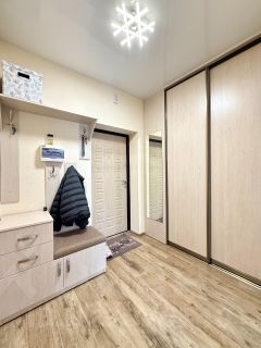 О квартире: квартира общей площадью 38 кв.м. Кухня 14 кв.м. со встроенным кухонным гарнитуром и техникой.Комната правильной формы с панорамным остеклением полностью мебилированна, натяжные потолки, влагостойкий ламинат, совмещенный санузел в кафеле, прихожая с гардеробом .Есть кондиционер.