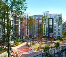 Комплексная концепция благоустройства общественных пространств Концепция "дом-отель" предполагает единое пространство комфорта и общий стиль без границ и контрастов во всём пространстве жилого комплекса "Аэро" — от дверей вашей квартиры до входных групп и зон отдыха. Дворы без машин с авторским озеленением и функциональным зонированием учитывают предпочтения всех жителей комплекса.