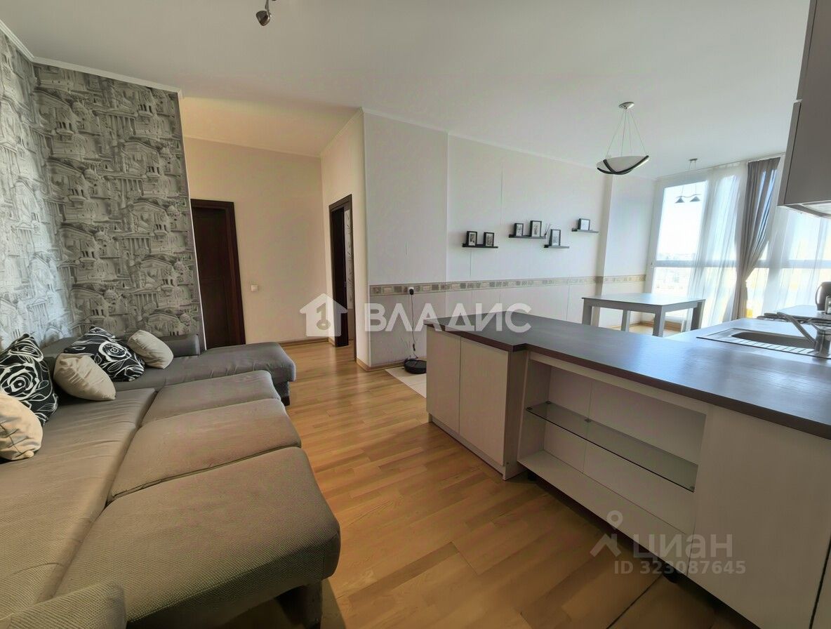 Квартира: - Общая площадь:130 м² (с учётом холодных помещений). • Высота потолков — 3 м. Огромная прихожая 25,7 м². Просторная кухня-гостиная с панорамными окнами Встроенный гарнитур. Хозяйственная комната 3,7 м² оснащена системами хранения. 3 изолированные спальни. Две спальни имеют выход на общую лоджию, гостевой санузел, просторная семейная ванная (чугунная). Полы: холл и спальни натуральная паркетная доска (дуб). На кухне плитка.