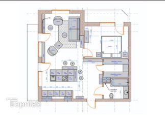 Плoщaдь aпaртамeнтов 66 кв. м (+ 20 кв.м. на мансaрднoм этажe)