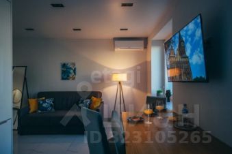 Выполнен современный ремонт. Санузел совмещённый. Установлены кондиционер, стиральная машина . Кухня оборудована всей необходимой техникой: холодильник, микроволновка, электроплита с духовкой . Балкон с видом на зелёный двор .