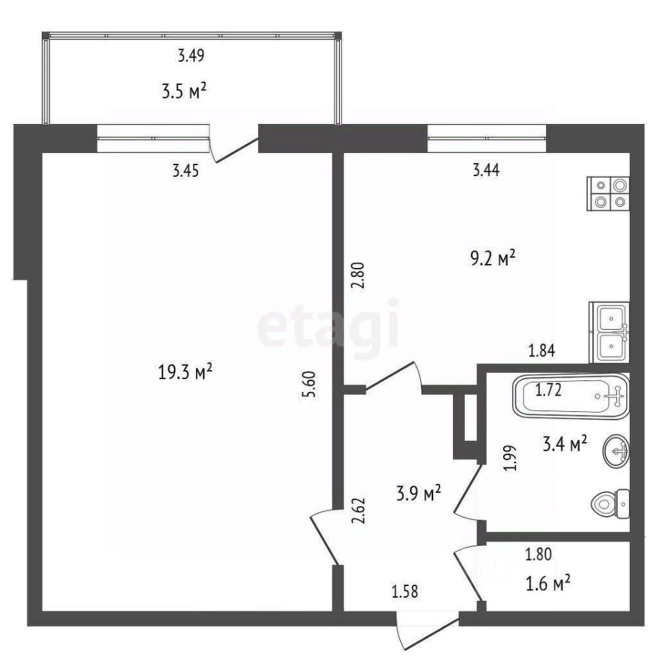 Квартира расположена на 5 этаже 5-этажного дома, общей площадью 40.9 м². Просторная комната 19.3 м² и кухня 9.2 м² обеспечат вам максимальный комфорт. Также в наличии балкон 3.5 м² застекленный, где вы сможете наслаждаться свежим воздухом.
