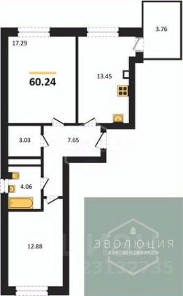 Квартира: 2 к 60,24 кв.м., 8 этаж в комплексе Подсолнухи, 4 очередь, корп.7, сдача: 4кв. , этажей: 9, адрес Калининград г., Крейсерская ул., , Застройщик: Модуль-Стройград.