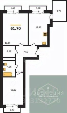 Квартира: 2 к 61,70 кв.м., 9 этаж в комплексе Подсолнухи, 4 очередь, корп.7, сдача: 4кв. , этажей: 9, адрес Калининград г., Крейсерская ул., , Застройщик: Модуль-Стройград.