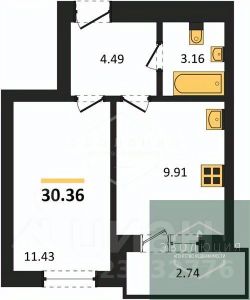 Квартира: 1 к 30,36 кв.м., 4 этаж в комплексе Подсолнухи, 4 очередь, корп.7, сдача: 4кв. , этажей: 9, адрес Калининград г., Крейсерская ул., , Застройщик: Модуль-Стройград.