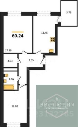 Квартира: 2 к 60,24 кв.м., 5 этаж в комплексе Подсолнухи, 4 очередь, корп.7, сдача: 4кв. , этажей: 9, адрес Калининград г., Крейсерская ул., , Застройщик: Модуль-Стройград.