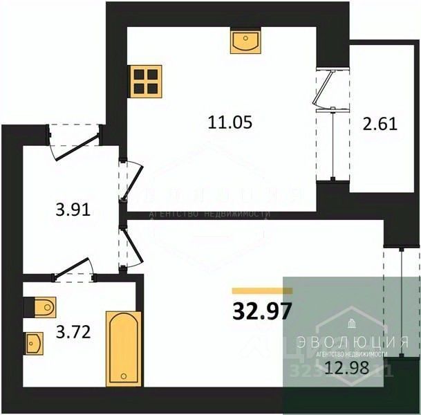 32,97 м²