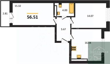 Квартира: 2 к 56,51 кв.м., 7 этаж в комплексе 11 мая, 3 очередь, корп.3.2, сдача: 3кв. , этажей: 9, адрес Калининград г., Согласия ул., , Застройщик: Модуль-Стройград.