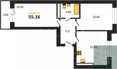 Квартира: 2 к 55,16 кв.м., 2 этаж в комплексе 11 мая, 3 очередь, корп.3.2, сдача: 3кв. , этажей: 9, адрес Калининград г., Согласия ул., , Застройщик: Модуль-Стройград.