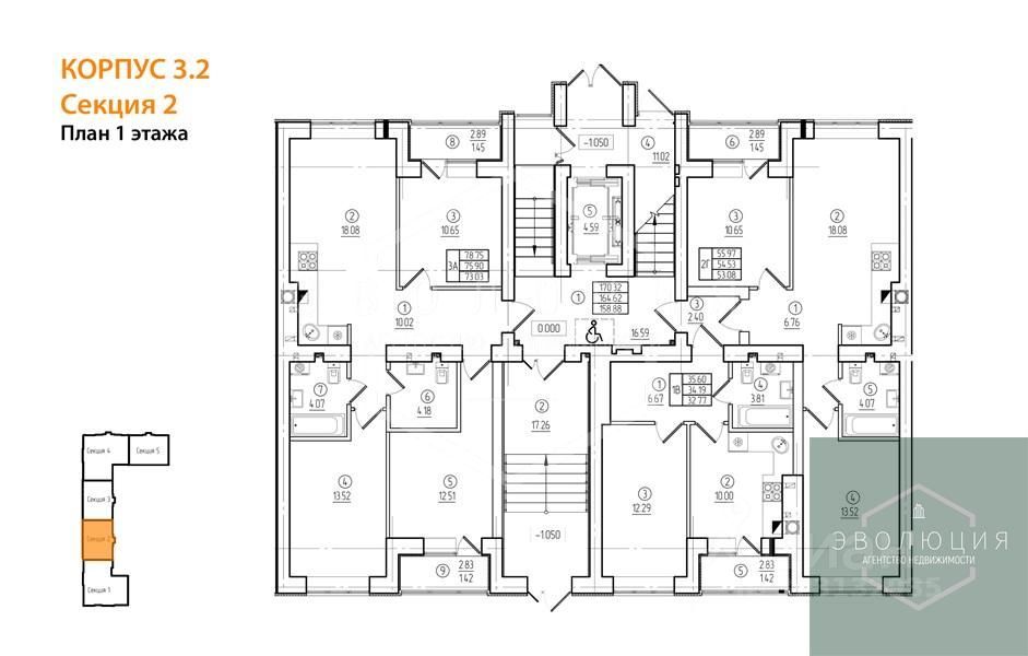 Квартира: 3 к 75,90 кв.м., 1 этаж в комплексе 11 мая, 3 очередь, корп.3.2, сдача: 3кв. , этажей: 9, адрес Калининград г., Согласия ул., , Застройщик: Модуль-Стройград.