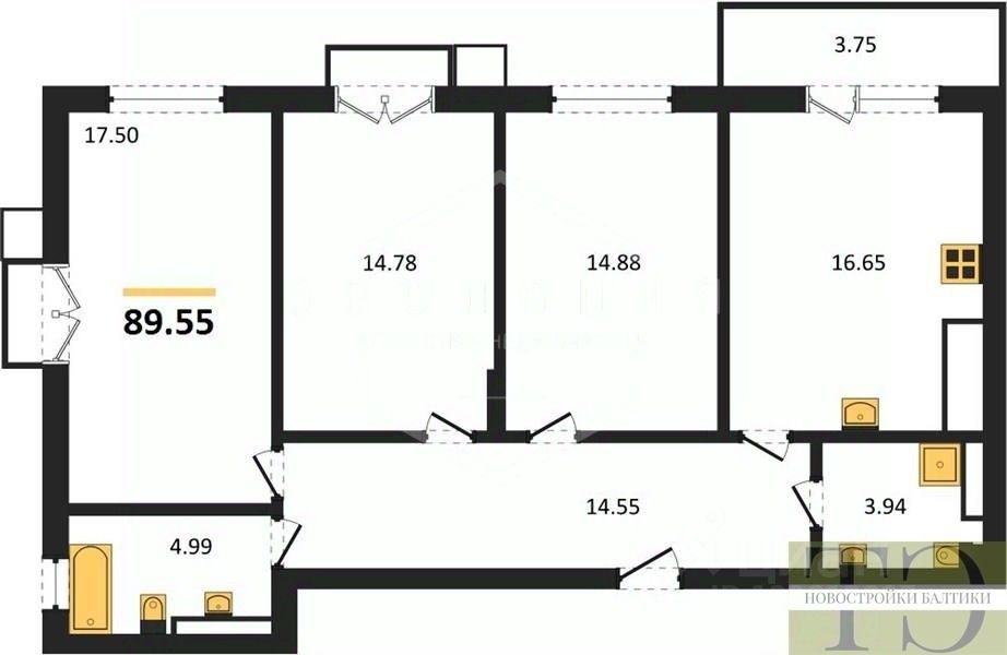 Квартира: 3 к 89,70 кв.м., 2 этаж в комплексе Аэро, 1 очередь, корп.B, сдача: 3кв. , этажей: 7, адрес Малое Исаково п., Первая ул., д. 1 корп 2, Застройщик: ГК Расцвет.