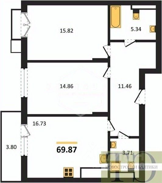 Квартира: 2 к 70,10 кв.м., 4 этаж в комплексе Аэро, 1 очередь, корп.B, сдача: 3кв. , этажей: 7, адрес Малое Исаково п., Первая ул., д. 1 корп 2, Застройщик: ГК Расцвет.