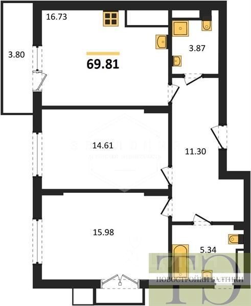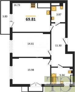 Квартира: 2 к 70,30 кв.м., 7 этаж в комплексе Аэро, 1 очередь, корп.B, сдача: 3кв. , этажей: 7, адрес Малое Исаково п., Первая ул., д. 1 корп 2, Застройщик: ГК Расцвет.