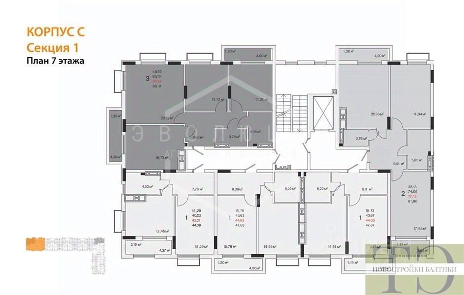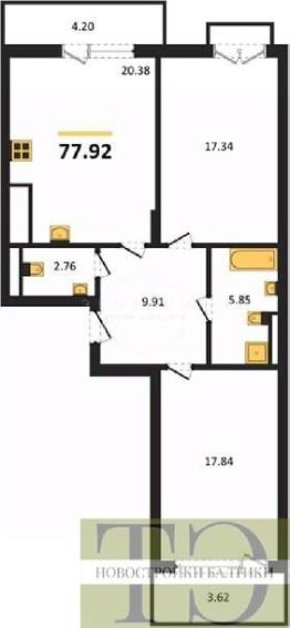 Квартира: 2 к 78,20 кв.м., 7 этаж в комплексе Аэро, 1 очередь, корп.C, сдача: 3кв. , этажей: 7, адрес Малое Исаково п., Первая ул., д. 1 корп 3, Застройщик: ГК Расцвет.
