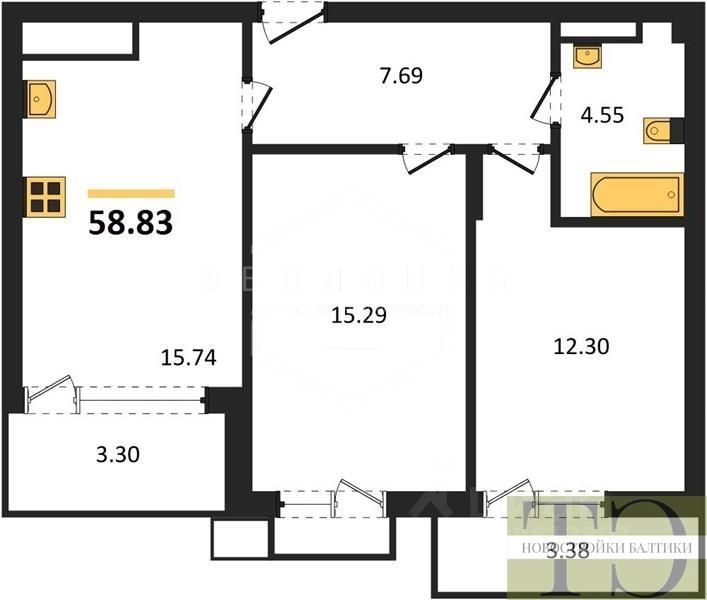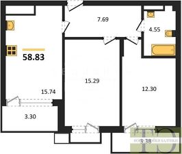 Квартира: 2 к 59,20 кв.м., 7 этаж в комплексе Аэро, 1 очередь, корп.D, сдача: 3кв. , этажей: 7, адрес Малое Исаково п., Первая ул., д. 1 корп 4, Застройщик: ГК Расцвет.