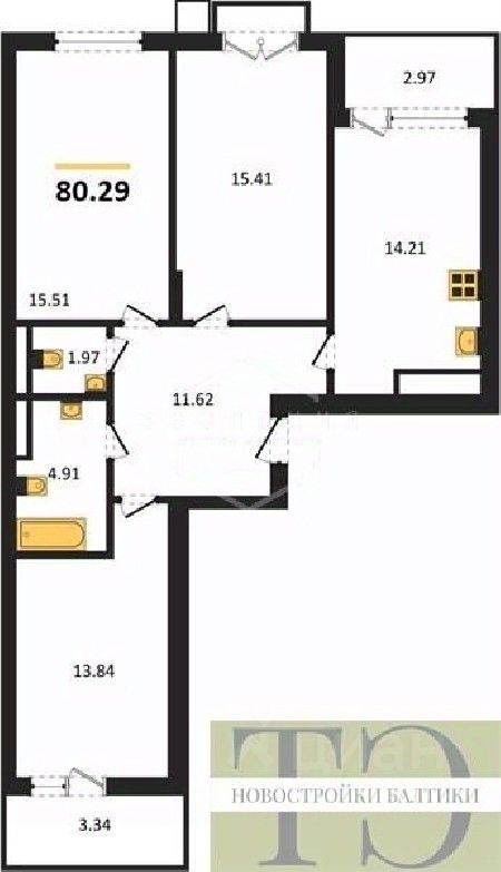 Квартира: 3 к 80,60 кв.м., 7 этаж в комплексе Аэро, 1 очередь, корп.D, сдача: 3кв. , этажей: 7, адрес Малое Исаково п., Первая ул., д. 1 корп 4, Застройщик: ГК Расцвет.