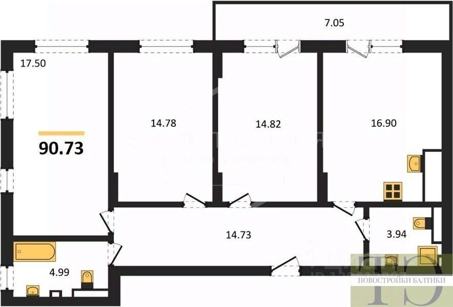 Квартира: 3 к 90,73 кв.м., 5 этаж в комплексе Аэро, 1 очередь, корп.A, сдача: 3кв. , этажей: 7, адрес Малое Исаково п., Первая ул., д. 1 корп 1, Застройщик: ГК Расцвет.