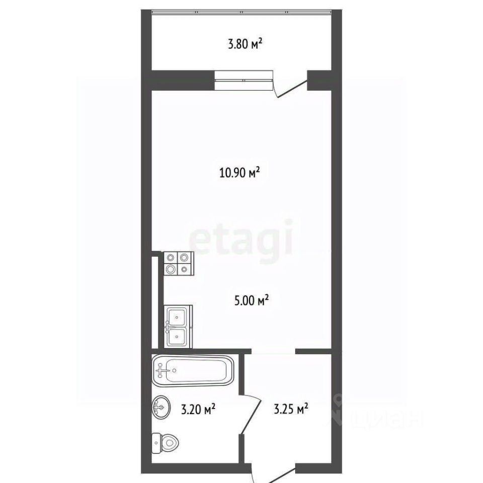 Общая площадь квартиры 23.5 кв.м. Совмещенный санузел 3,20кв.м, в котором спокойно помещается как ванна, так и душевая кабина. Из окон квартиры открывается великолепный вид.