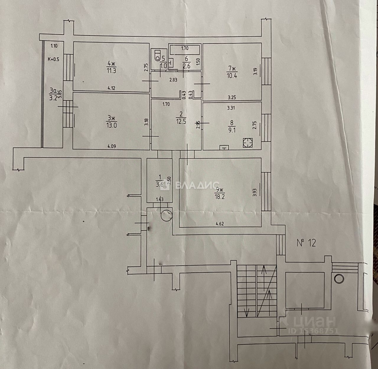 Общая площадь 81,7 кВ.м. Четыре изолированные комнаты 13 кВ. м., 11,3 кВ. м., 10,4 кВ. м., 18,2 кВ. м. Кухня 9,1 кВ. м. Просторный холл 12,5 кВ. м. Холодное помещение 3,2 кВ. м. (остекленная лоджия).