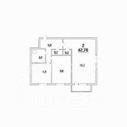 Квартира жилой площадью 27.3 квадратных метров, включает 2 комнаты, кухню и совмещённый санузел.