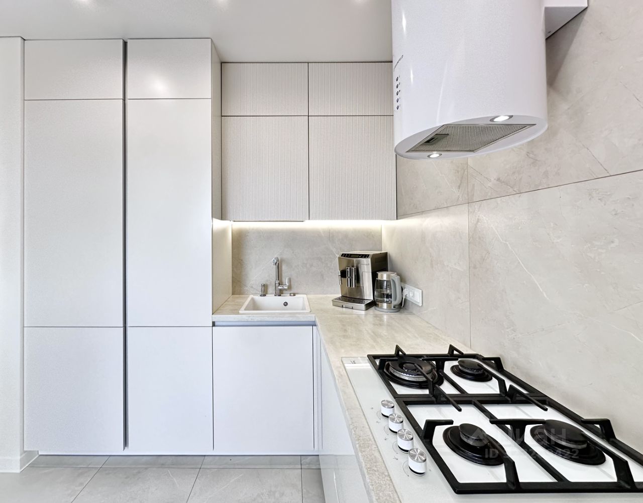 - Итальянский широкоформатный керамогранит в кухне и ванной