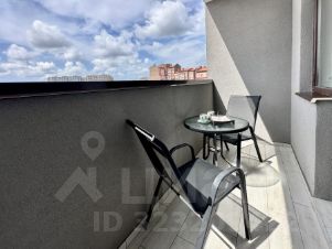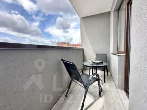 Просторная планировка (кухня-гостиная, совмещенный санузел, вместительная гардеробная и открытая лоджия с уличной мебелью) общей площадью 45 м².