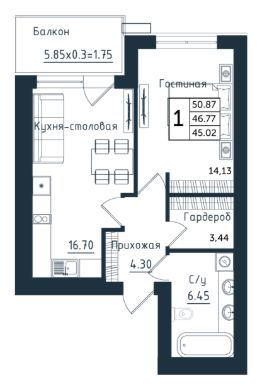 50,87 м²