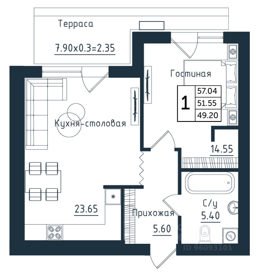 57,04 м²