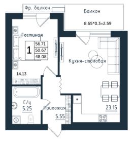 Продаётся 1-комнатная квартира в строящемся доме (Дом 3), срок сдачи: II-кв. 2026, общей площадью 56.31 кв.м., на 2 этаже. Новый жилой комплекс "Янтарные Сезоны" от Группы компаний "Модуль-Стройград" расположен по адресу: Калининградская обл., пгт Янтарный, ул. Советская.
