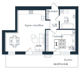 70,95 м²