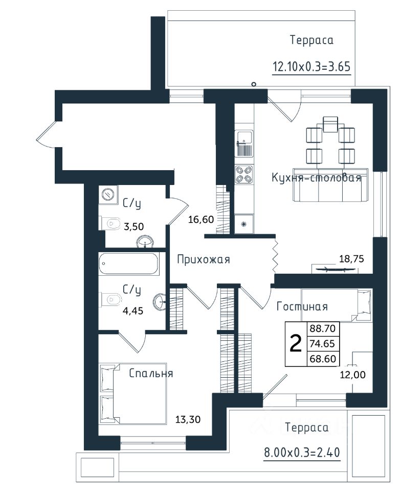 Продаётся 2-комнатная квартира в строящемся доме (Дом 1), срок сдачи: II-кв. 2026, общей площадью 88.7 кв.м., на 1 этаже. Новый жилой комплекс "Янтарные Сезоны" от Группы компаний "Модуль-Стройград" расположен по адресу: Калининградская обл., пгт Янтарный, ул. Советская.