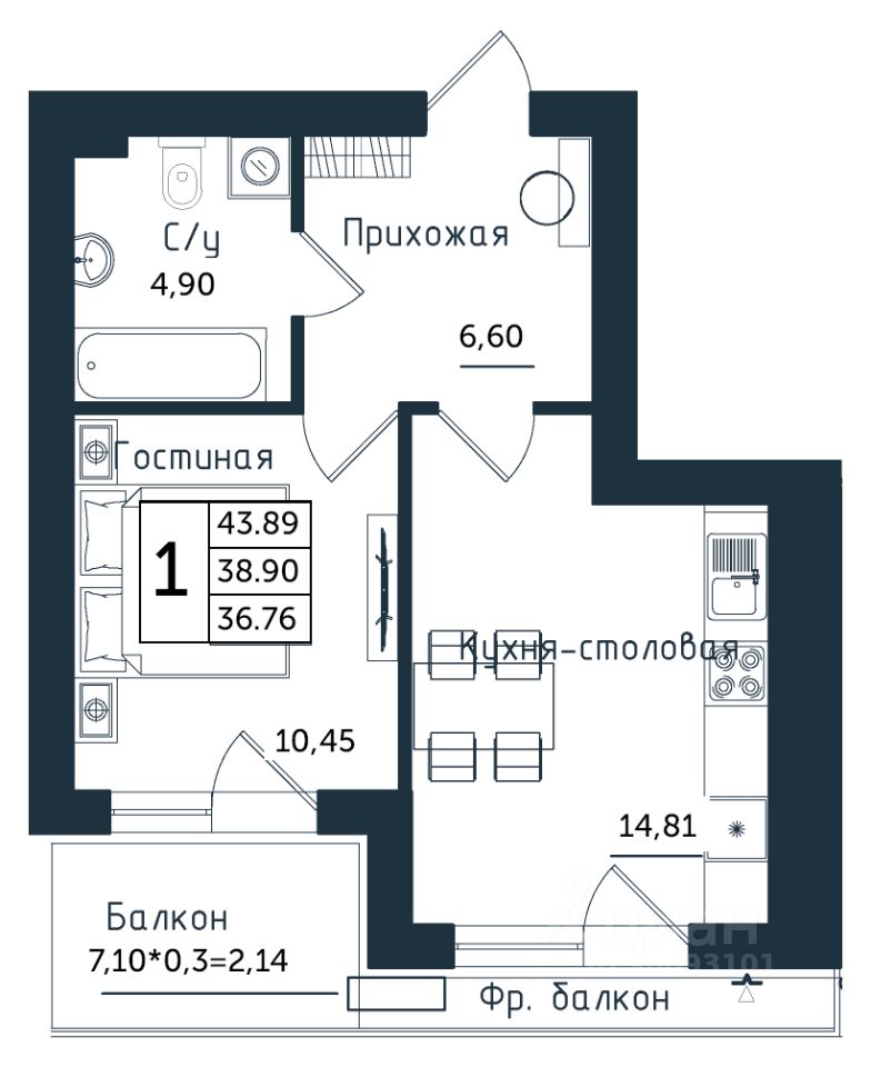 Продаётся 1-комнатная квартира в строящемся доме (Дом 1), срок сдачи: II-кв. 2026, общей площадью 43.89 кв.м., на 4 этаже. Новый жилой комплекс "Янтарные Сезоны" от Группы компаний "Модуль-Стройград" расположен по адресу: Калининградская обл., пгт Янтарный, ул. Советская.