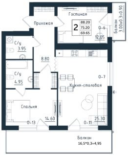 Продаётся 2-комнатная квартира в строящемся доме (Дом 2), срок сдачи: II-кв. 2026, общей площадью 88.2 кв.м., на 2 этаже. Новый жилой комплекс "Янтарные Сезоны" от Группы компаний "Модуль-Стройград" расположен по адресу: Калининградская обл., пгт Янтарный, ул. Советская.