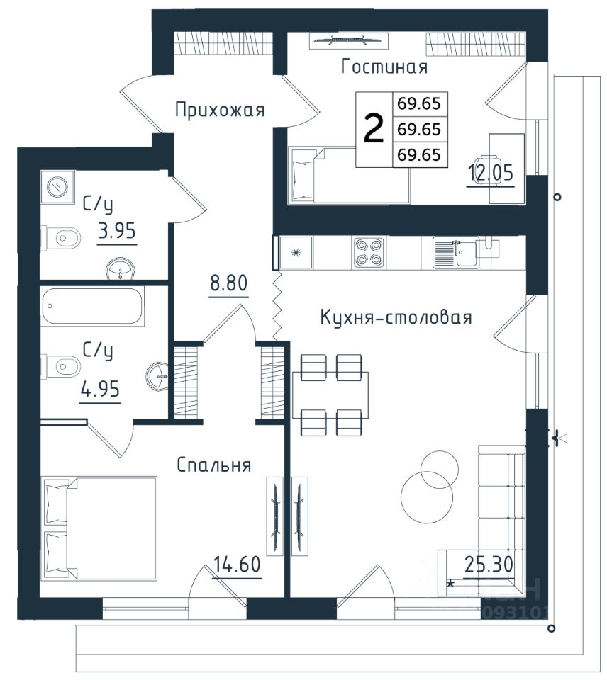 Продаётся 2-комнатная квартира в строящемся доме (Дом 2), срок сдачи: II-кв. 2026, общей площадью 69.65 кв.м., на 1 этаже. Новый жилой комплекс "Янтарные Сезоны" от Группы компаний "Модуль-Стройград" расположен по адресу: Калининградская обл., пгт Янтарный, ул. Советская.