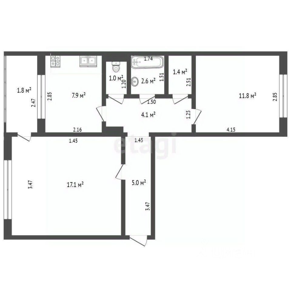 Рациональная планировка (изолированные комнаты правильной квадратной формы, раздельный санузел) позволяет оптимально использовать жилое пространство.