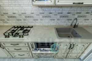 Встроенная качественная мебель, духовой шкаф, микроволновая печь, посудомоечная машина, холодильник, телевизор, обеденный стол и диван.