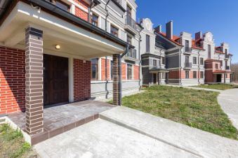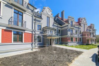 Дом в прусско-голландском стиле. Апарты покупались для себя ,поэтому на ремонте не экономили . Двери-массив ясеня-1000€ штука. Плитка и другие материалы-какую дизайнер выбрал. Кухня со стеклянными фасадами и фурнитурой Blum. Микроволновка, варочная поверхность-Bosch,холодильник и посудомойка-Ariston и тд.
