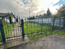Ухоженная территория, трава покошена, солидный забор с калиткой и воротами, парник, плодовые деревья и кустарники, хоз.постройка для хранения дров и садового инвентаря, мангал.