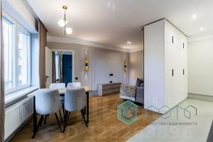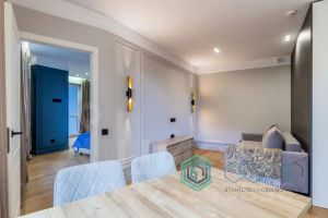 Интерьер выполнен по дизайнерскому проекту — с продуманным освещением, акцентами света и дорогой мебелью, которая подчеркивает вкус и статус владельца.