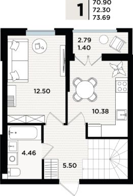 В проекте представлены 1, 2, 3 -комнатные и двухуровневые квартиры различной площади.