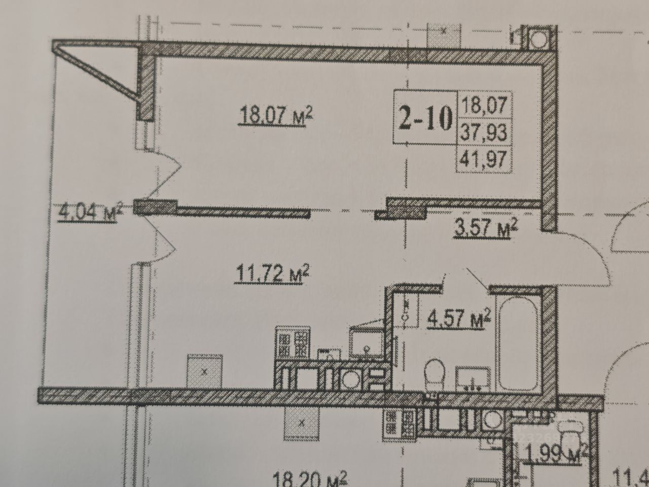 Oбщая плoщaдь 39,5 кв.м. плюс балкон 8 кв.м