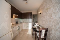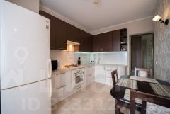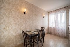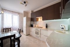 - большая уютная кухня 11.6 м.кв. с кухонным гарнитуром, со встроенной бытовой техникой, светильники бра, стол со стульями. Из кухни выход на застекленный балкон из которого открывается потрясающий вид на город. Захватывающий вид на закаты, ночной город;