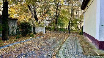 Дом немецкой постройки, с закрытой зеленой территорией.